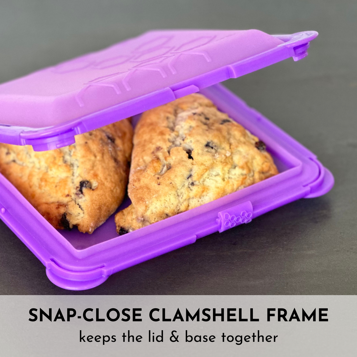 SoftShell is easier to clean and dry than a silicone bag, more compact than a traditional container, features stay-cool edges for safe handling out of the microwave, and doubles as a plate. The best part? No detached lids to mismatch or lose! Perfect for sandwiches, snacks, and leftovers.