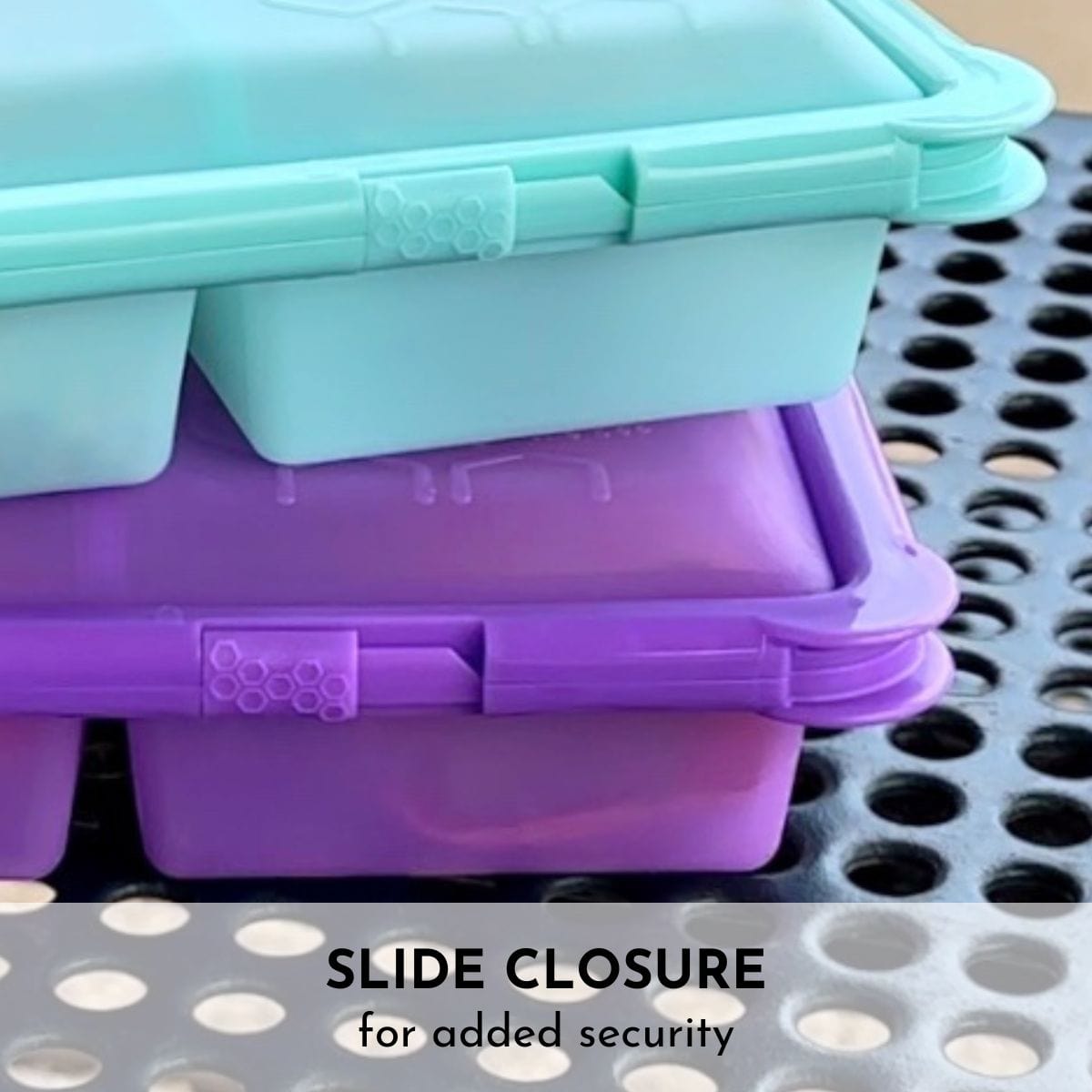 My daughter loves the purple and I love how much easier these are to pack, use and clean than pouches that don't fold open like this. Great design!